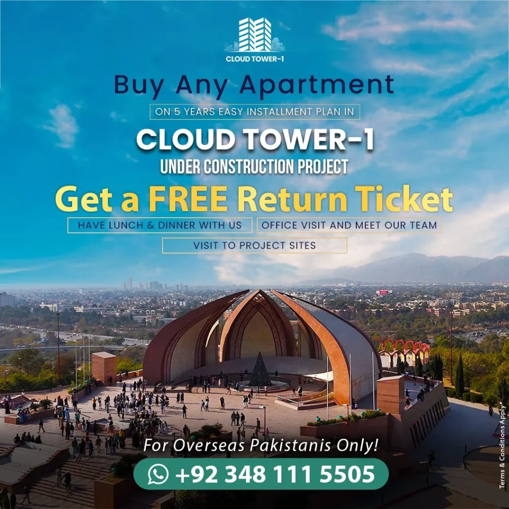 Cloud Tower-1 represents the pinnacle of luxury living in Pakistan’s capital. This prestigious 29-floor high-rise combines contemporary design with world-class amenities, offering you a lifestyle where comfort truly meets class.